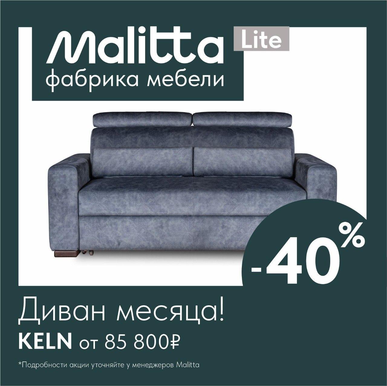 Хотите изменить свой интерьер и подарить дому уютной роскоши? Тогда приходите в салон «Malitta», где действует скидка 40% на диваны месяца!