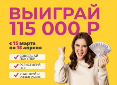 Совершайте покупки и получите шанс выиграть 115 000 рублей. Чем больше покупок — тем выше ваши шансы на победу!