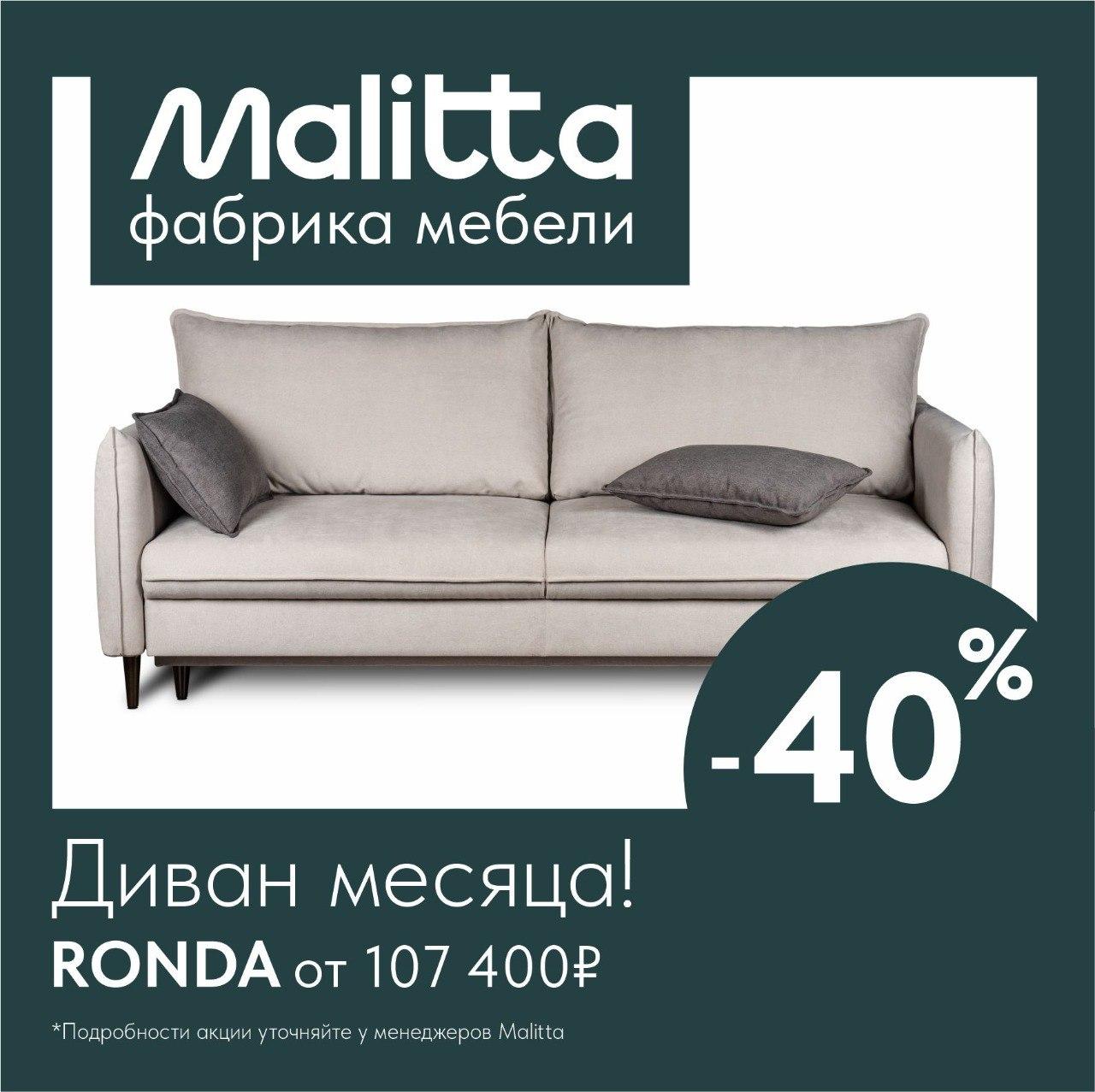 Хотите изменить свой интерьер и подарить дому уютной роскоши? Тогда приходите в салон «Malitta», где действует скидка 40% на диваны месяца!