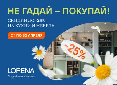 Подробности акции можно уточнить у продавцов-консультантов в салоне LORENA или по телефону 8 800 550 74 89