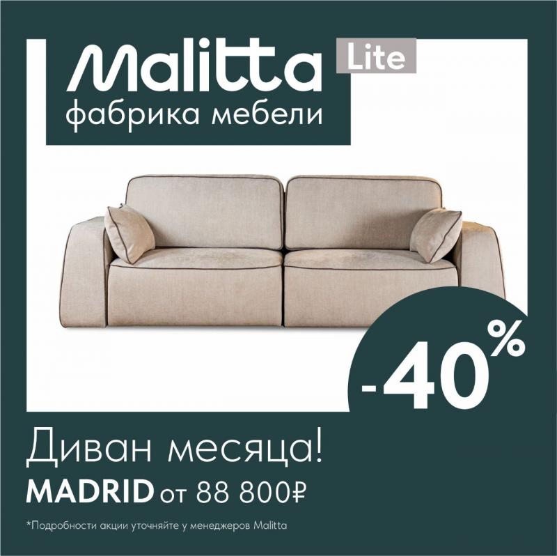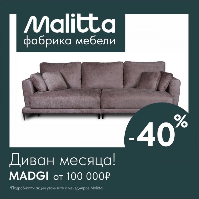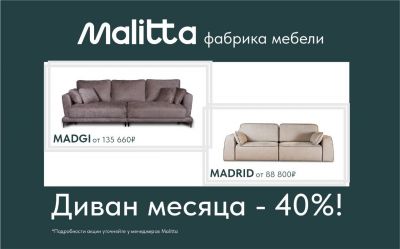 Акция месяца в салоне «Malitta»: стильный модульный диван MADRID со скидкой 40%, а роскошный диван MADGI со скидкой 43%!